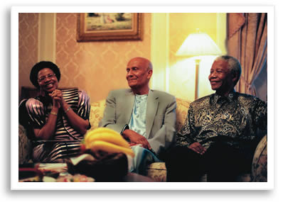 Setkání Sri Chinmoye s Prezidentem Mandelou a první dámou paní Graca. 20. září 1998, New York